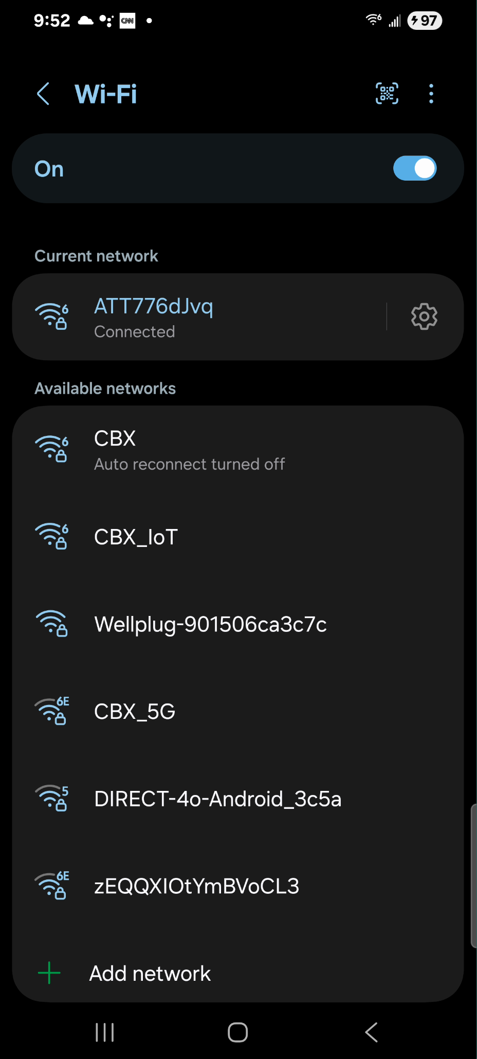 From the list of available Wi-Fi networks, locate the one named: "Wellplug-[XXXX]". Enter the password "12345678" when prompted.
