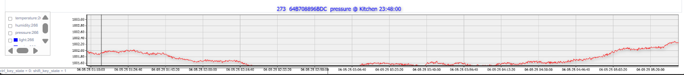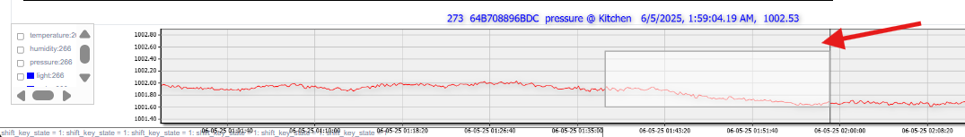 To view detailed information for a specific data bar, simply hover your mouse over it. A tooltip will appear showing the sensor type, location, device number, and MAC address associated with that data point.