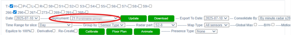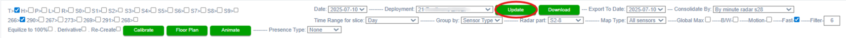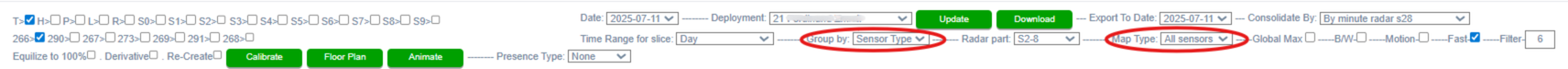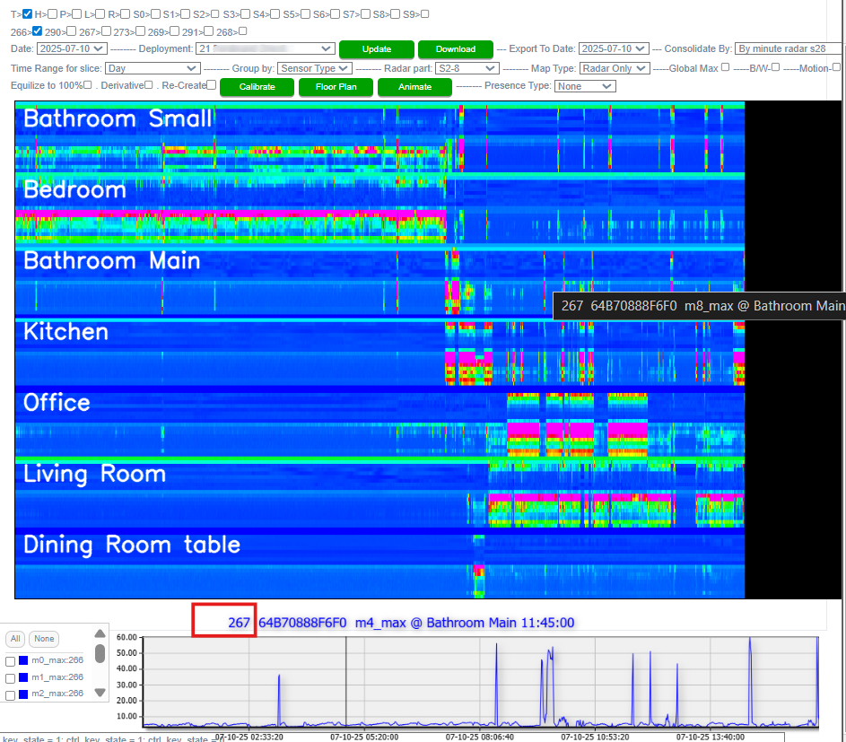 The Radar Only graph visualizes data from the radar component of each sensor. For better readability, the corresponding line graphs are grouped by room.