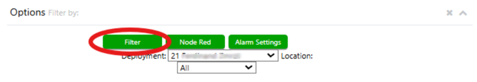 Next, use the top menu to select the desired deployment and sensor location. To update the display below, click the green Filter button on the right.